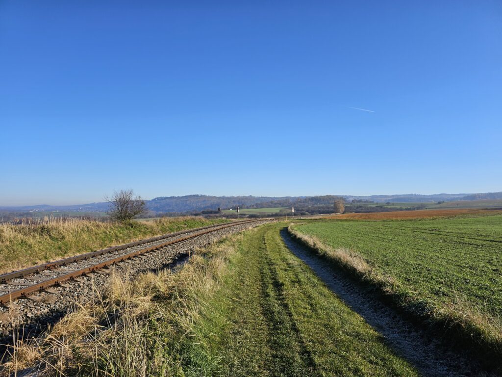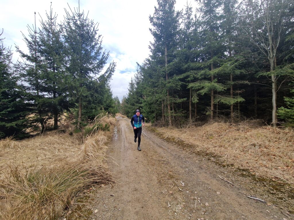 A pak přišlo první převýšení. Místní kopečky jsou sice nenápadné, ale když se sejdou do jedné etapy, bolí. Vytáhnou z člověka všechno. Odměnou za pot je výhled – na lesy, které se ještě neprobudily, na mlhu válící se v údolí, na svět z nadhledu.